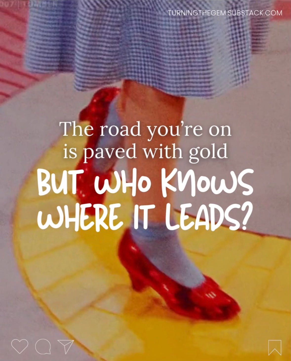 “The road you’re on is paved with gold, but who knows where it leads?”